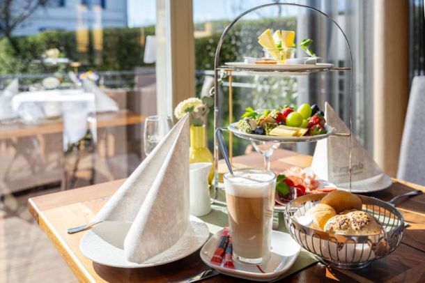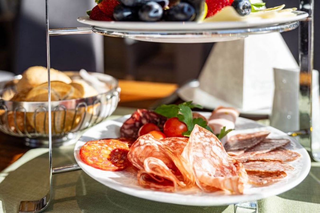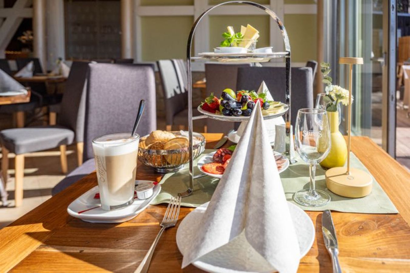 Es erwartet Sie ein liebevoll angerichtetes Frühstück, das keine Wünsche offenlässt: feine Käse- und Wurstspezialitäten, frisches Obst, ofenwarmes Brot und Brötchen sowie Eierspeisen, die à la minute frisch zubereitet werden. Wer es besonders raffiniert mag, ergänzt sein Frühstück um edlen Räucherlachs oder genießt ein klassisches Rührei natur, mit krossem Bacon oder in der Variante Tomate-Mozzarella. Aromatischer Kaffee, Cappuccino oder Tee runden das italienische Frühstückserlebnis ab. Leise Musik begleitet Sie, während die Morgensonne durch die Fenster fällt und das historische Fährgut in goldenes Licht taucht – ein Morgen, der wie ein kleiner Urlaub wirkt.